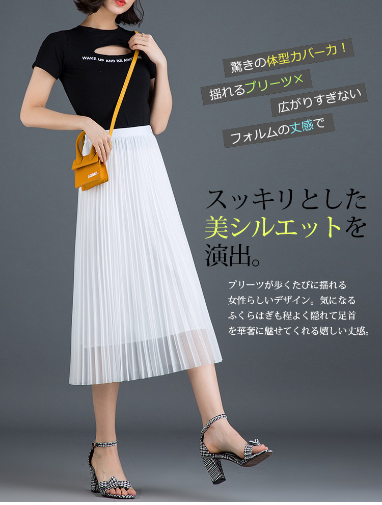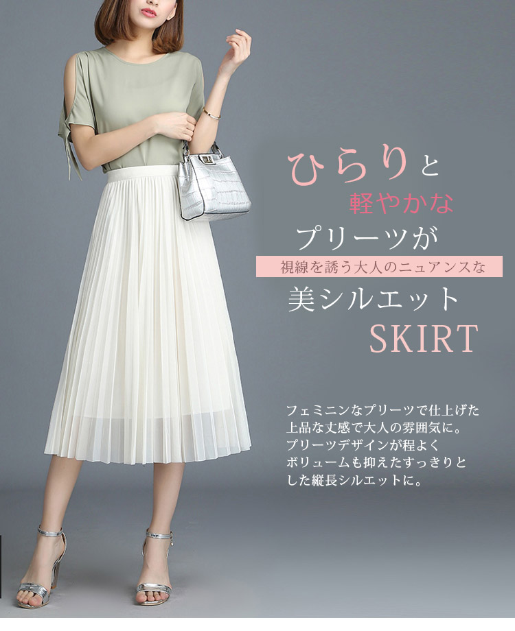【プリーツスカート】ひらりと軽やか、スッキリとした美シルエットを演出。